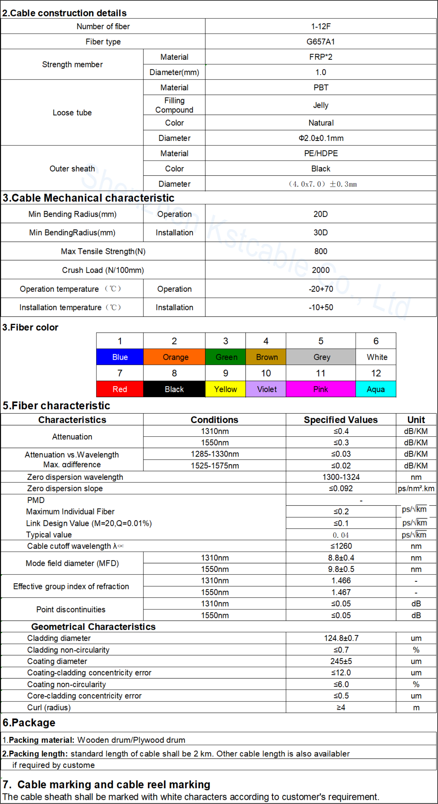 The optical fibers and jelly (1-6F) are filled in the loose tube positioned in the cable center,Two parallel FRP with excellent anti-electromagnet ability are placed at the two sides of the cable, the cable is completed with flameproof black (or custom) color LSZH outer sheath.