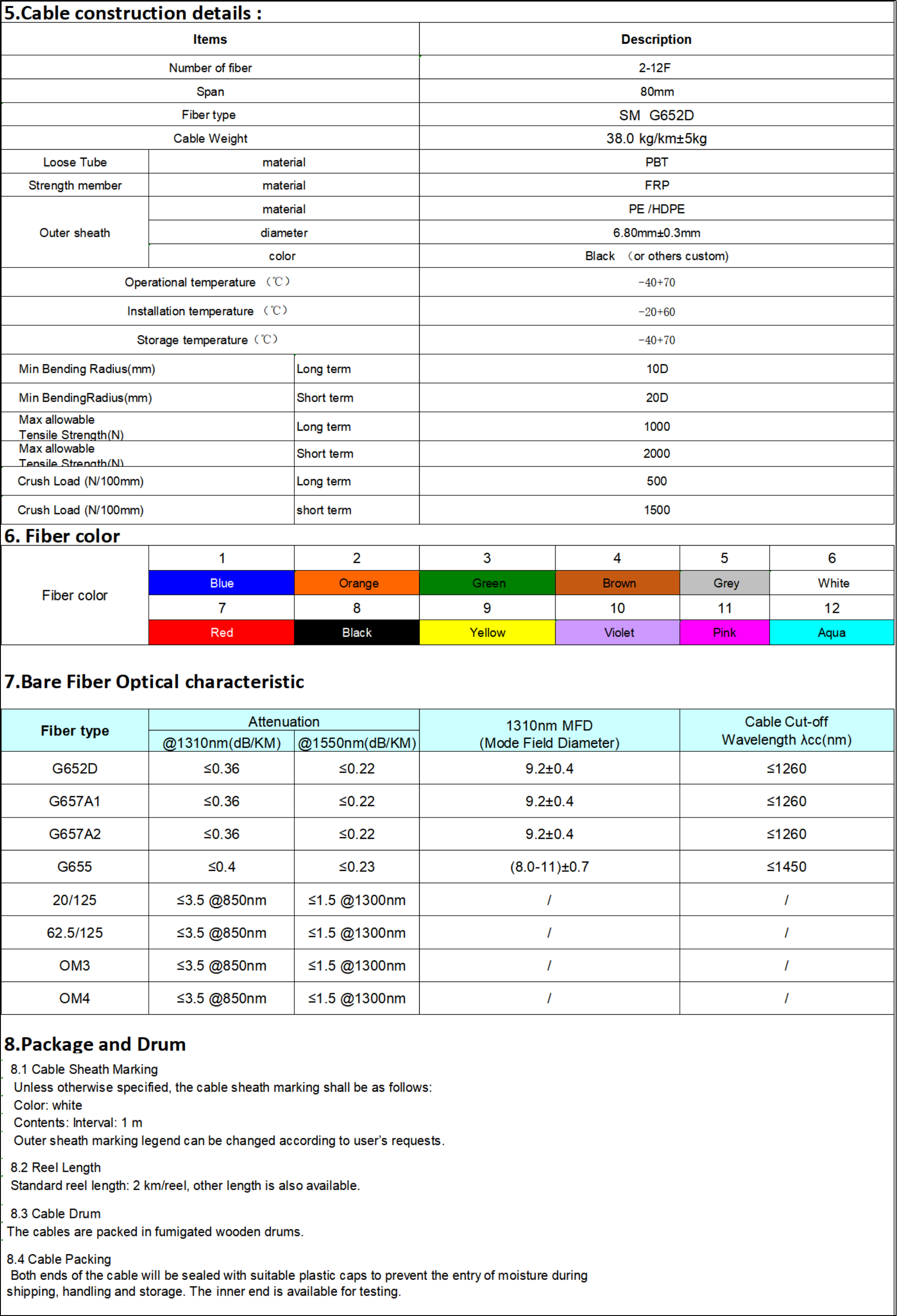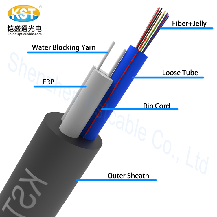 The fibers are positioned in a loose tube made of a high modulus plastic. The tubes are filled with a water-resistant filling compound.FRP rods filled to reinforce the strength of the cable . The cable is completed with a polyethylene (PE) sheath.