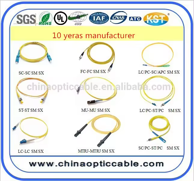 Our fiber optic patch cord are used to connect high speed and traditional networks like Gigabit Ethernet,Fast Ethernet and Ethernet.The patch cords are terminated with standard connector which gives optimum optical performance. Connector type: FC, SC, LC, ST, MTRJ, MU, E2000, MPO, DIN, D4, SM